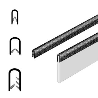 Integrated steel clamp bands or wire cores secure the firm fit of the profiles without additional screwing or bonding. The clamping range varies between 1 and 4 mm depending on the design and enables simple, tool-free installation on various edge thicknesses.