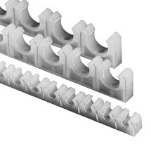 Polypropylene (PP) enables the production of pipe clamps with highly elastic clamping bodies that embrace pipes with more than 240°. The RAL 7032 colored clamps are UV-stable and designed for permanent temperatures from -10°C to +80°C.